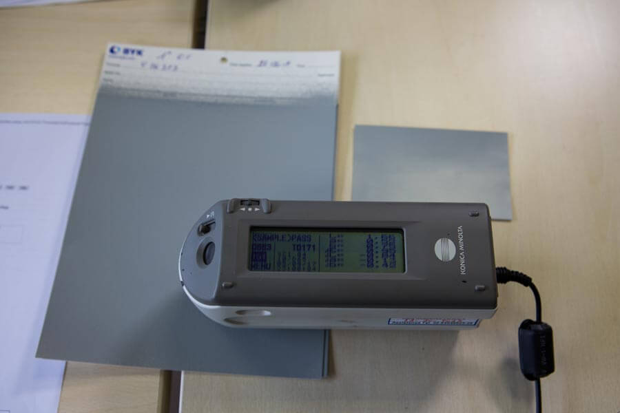 It withstands the G-155 test for 2000 hours. This test is performed using a specific machine equipped with a Xenon Arc lamp that simulates natural solar aging in an accelerated manner, allowing for a relatively quick evaluation of color retention performance.